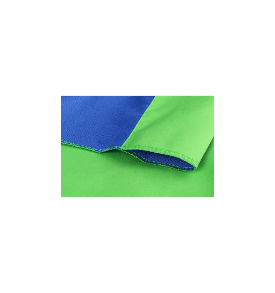 Background Cloth 2,7x5 m Blue/Green has a blue and a green side. The cloth features a hem. With this, the fabric can be slid around the tube of a background system for example.